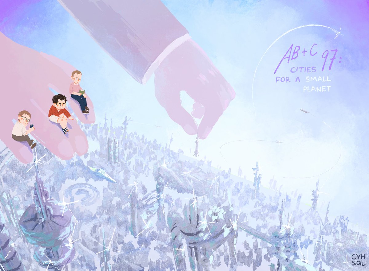 AB+C illustrated: Cities for a Small Planet 🛰️ @about_buildings Society if Rogers High Tech? Closeups + text free version below 🧵 #aboutbuildingsandcities #richardrogers #illustration #architecture