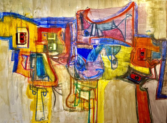 Title: Une belle histoire Mixed media on canvas 48x36 in #abstractart #abstractpainting #pastel #artgallery #torontoartgallery #contemporarypainting #contemporaryartgallery #abstrakt #abstraktekunst #artecontemporeo #newart #toycars #arte #artistsontwitter #ArtistOnTwitter
