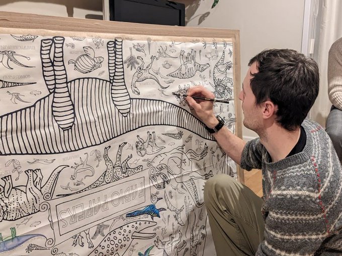 My 2nd first-author paper means I get to do some #Paleoart again! Wonderful celebratory activity with @FABiogeography @ReganEarly. Every lab group should have one!🦖🦕#marinebiology #PGR #AcademicTwitter #research
