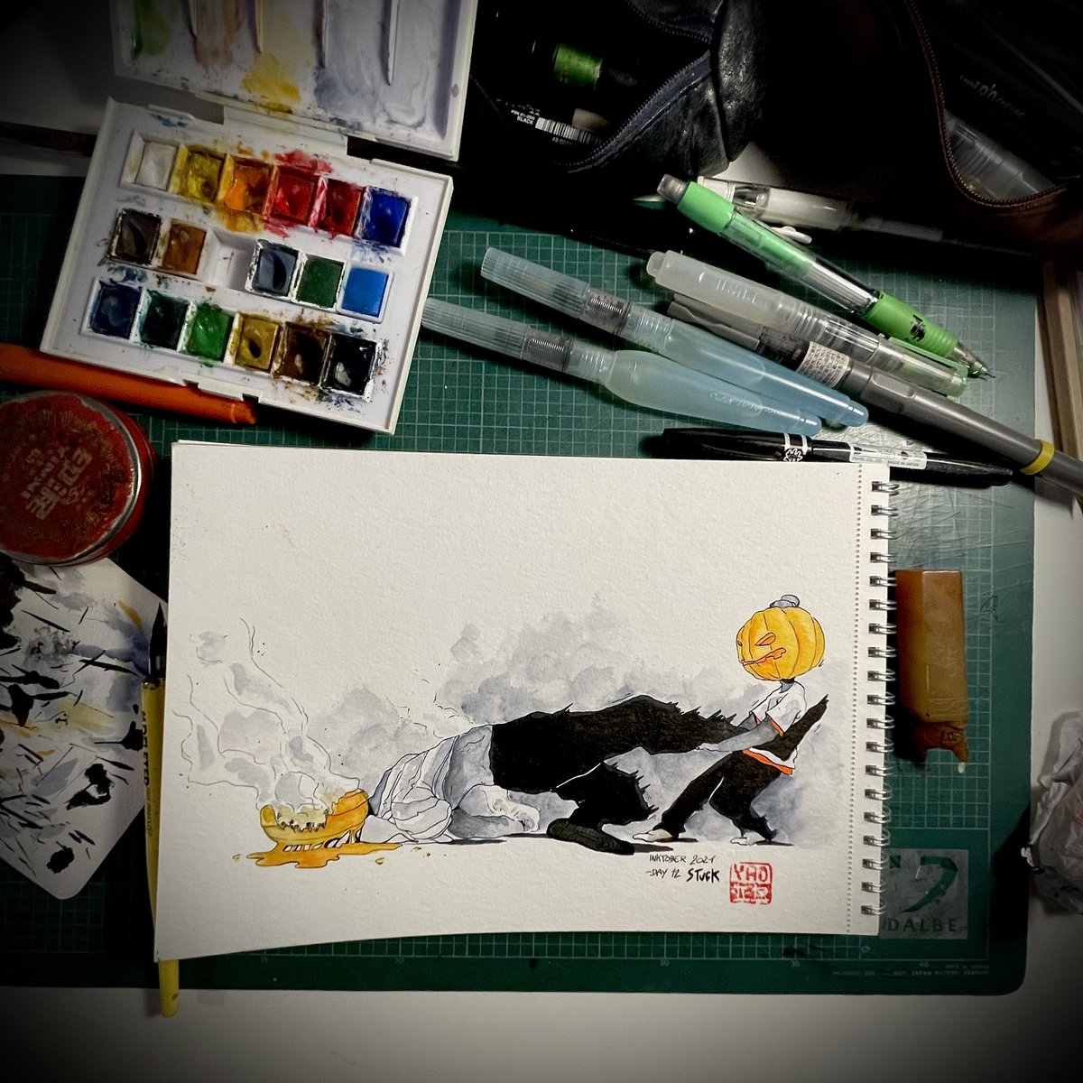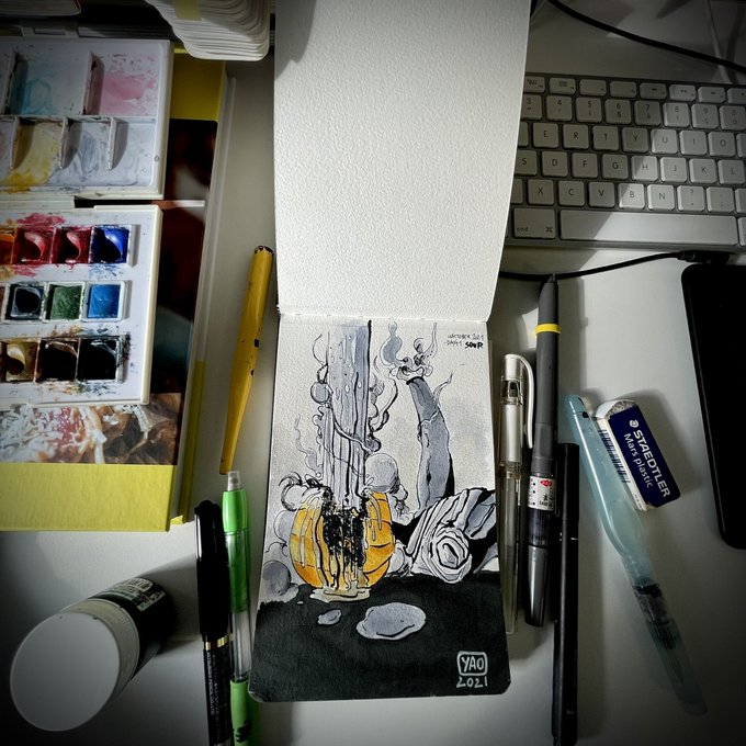 Je rattrape mon retard sans même dessiner #inktoberday11 #inktoberday12 #inktober #inktober2021 #colle #acide
