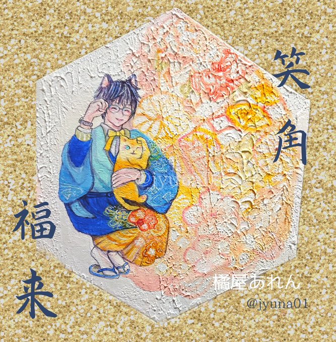 『 笑角福来 』 笑う角には福来る おいで おいで 千福万来 #むすび #art #illustration #アクリル絵具 #acryliconcanvas #旅人ノアール #新春芸術祭2023
