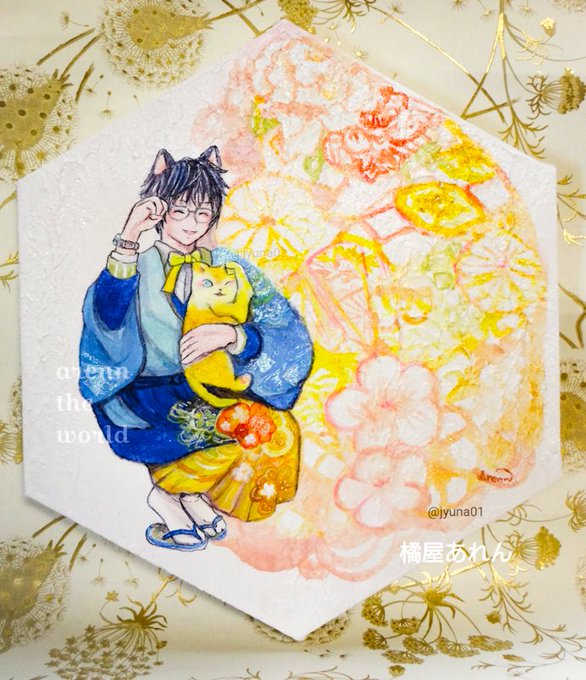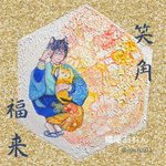 『 笑角福来 』 笑う角には福来る おいで おいで 千福万来 #むすび #art #illustration #acryliconcanvas #旅人ノアール ………… 【作品について】 木製/ 布キャンバス 六角形 対角線の長さ:20センチ 厚み:約19mm アクリル絵の具、ペン