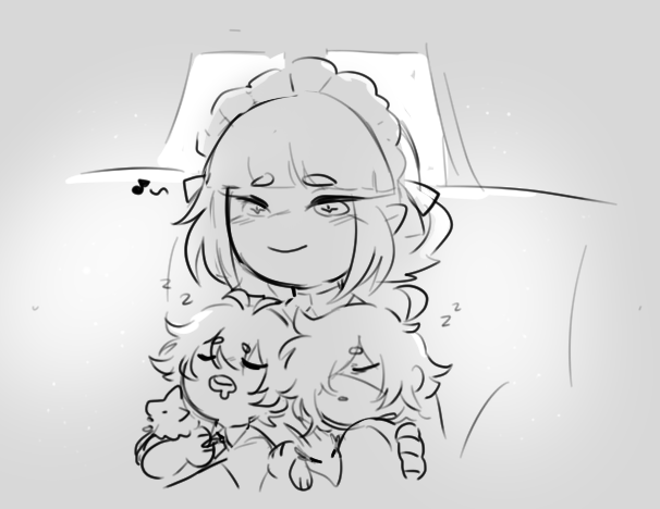 Adeptus adelinde watching over the two young chicklets of the ragnvindr family 🐥🐣🐥 #genshinimpact #AdeptusAdelindeAU #adelinde #diluc #kaeya