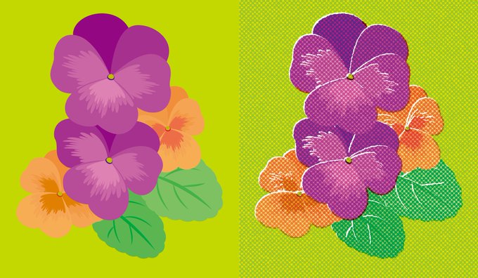 自画自賛してもいいですか。今やってる作業の副産物で、イラストがザラッとアナログ風になるアピアランスができました。 何日も悩みながらこねたのでだいぶ嬉しい。ニッコニコ #AdobeIllustrator