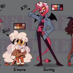 First set of adoptables!!! Purchase will include full rights to the character, a watermark free HD png, and transparent png! You can change name and anything else after purchase. DM if interested! 🥳🎉 #adoptable #HelluvaBoss