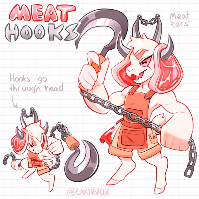 OTA | Meat Hooks 🥩 After a near fatal encounter with a butcher lost them their horns and ears, this once-docile goat swiftly learned to hook enemies from a distance to finish them off at close range. [💕RTS] #adoptable #characterdesign