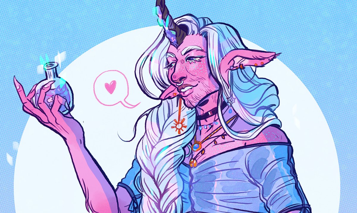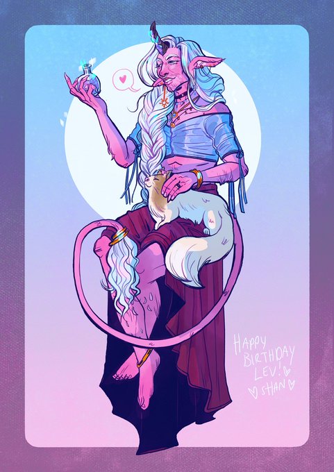 Adriel and Ketzeleh for @bloodmaledikt 's birthday! I love this soft tiefling man, so pretty and such a lovely boy to my Kit! 💘 #anonbeadraws #adriel #tiefling #dndart #digitalart #cat #art #friendoc #dnd #artistsontwitter