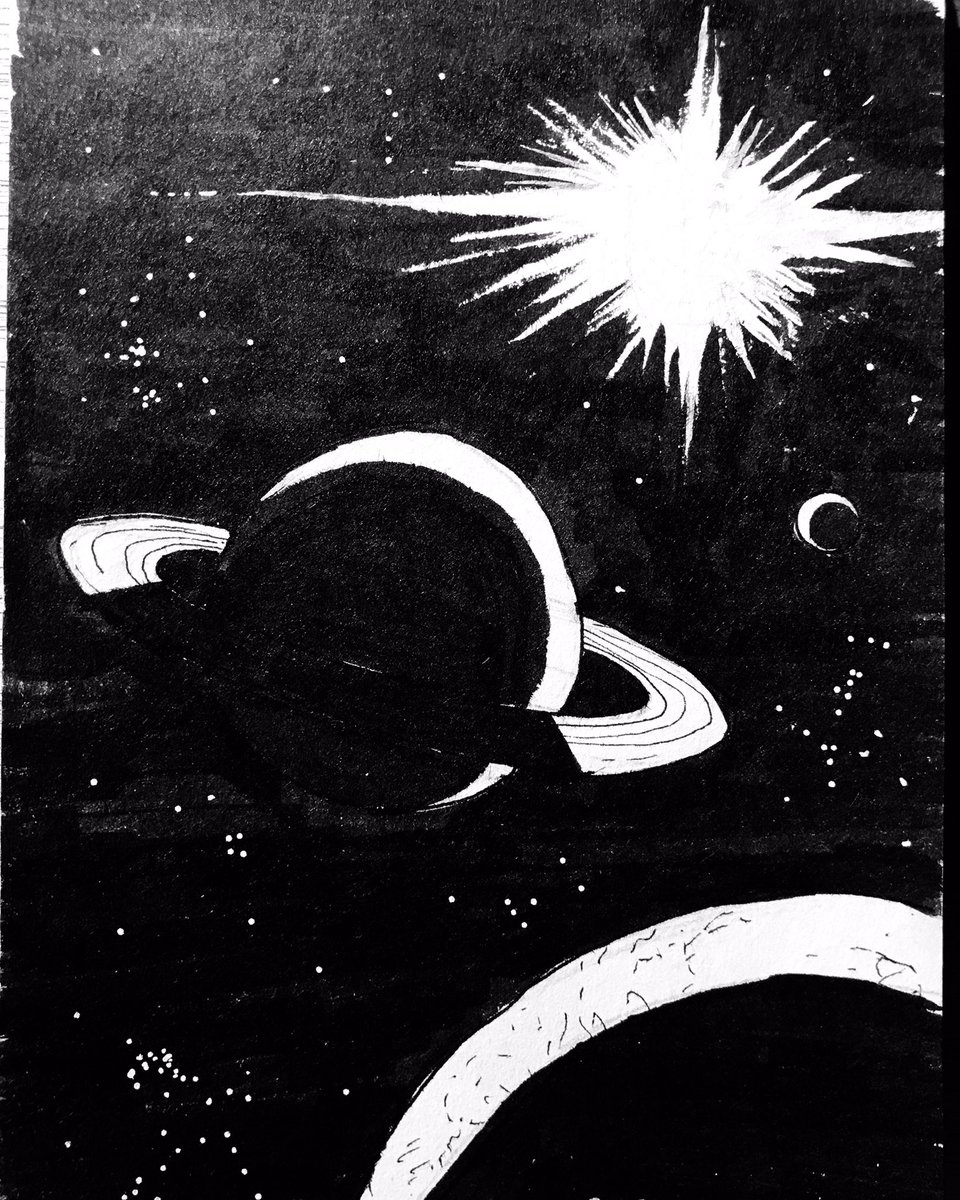 #adrinktober2021 Jour 20 : Contraste Écoutez parfois on fait avec ce qui vient en premier dans le cerveau Évidemment avec moi c’est l’espace #inktober2021