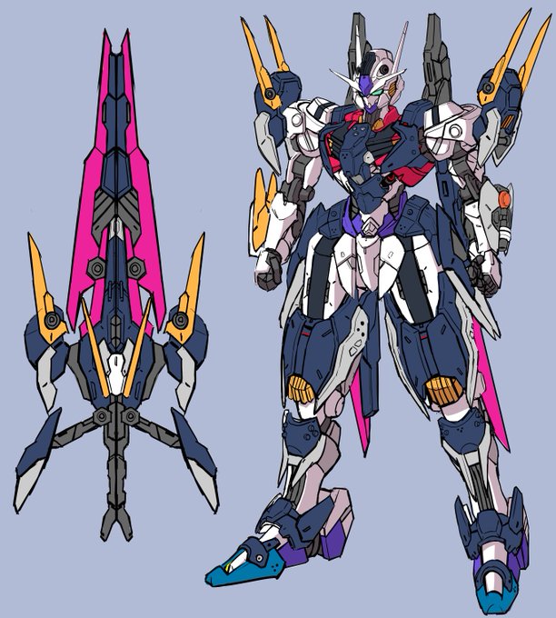 #aerialations #水星の魔女 ゲスト原稿のラフ。ガンダムエアリアルのオリジナル強化プランでビットステイヴが合体して大剣になるという。そして近接攻撃が主になるの追加装甲を装着する仕様で。