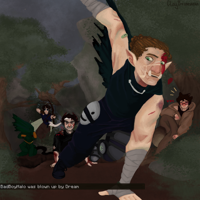 // slight blood "DREAM" "HAH! SUCK IT BAD!" Finally a Munhunt drawing, based of @aphaerie ´s dtiys! ft. some pgiling dream aganda. #dreamfanart #badboyhalofanart #georgenotfoundfanart #awesamdudefanart #antfrostfanart #sapnapfanart #aeridtiys #manhuntfanart