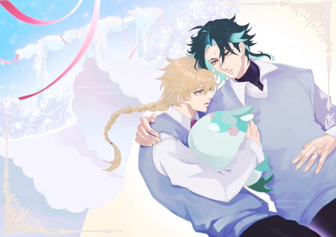 🎁Secret santa gift for @AdeptusMia our sweet highschool sweetheart promise of love to each other! 💚💛 hope you like it! 💚💛 #aethersecretsanta2022 #Xiaoaether #👹⛅️
