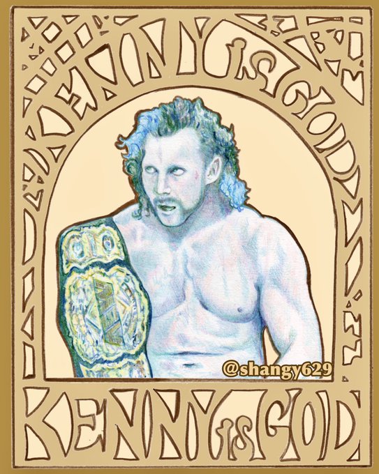 明日から職場復帰なので気合い入れるために入院前に描きかけてたイラストを完成させました☺ Grand Slamでの試合&防衛に元気付けられたので…不安だらけだけど…明日からお仕事頑張る💪 #KennyOmega #ケニーオメガ #AEWGrandSlam #KENNYisGOD #AEW #お絵描き #色鉛筆