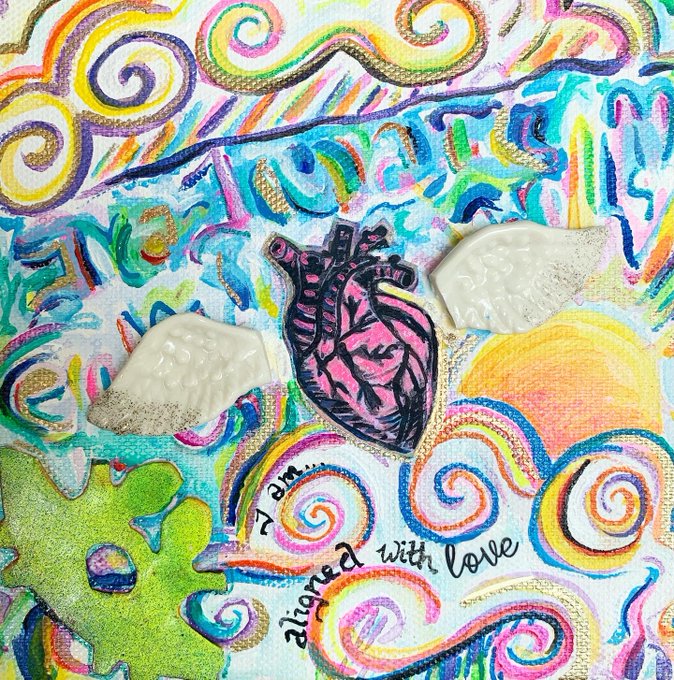 What to do with broken wings? Make art, that’s what… Also, working on a series of tiny affirmation paintings. If you use #affirmations for personal growth, what are some of your favorites? Looking for suggestions… #art #artistsontwitter #queercreatives #mixedmedia
