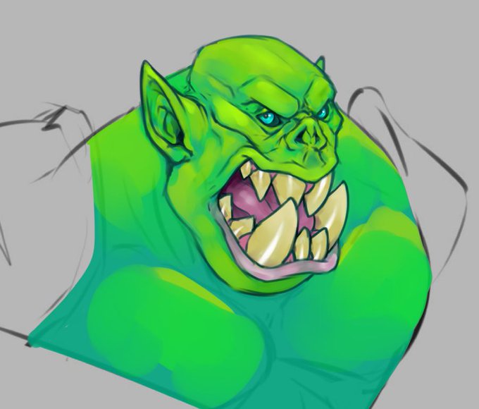 Uhhhh i painted a ork 😅 What do you guys think? 👉🏾👈🏾 #WarhammerCommunity #ageofsigmar #orruks #ork #digitalart @WarComTeam