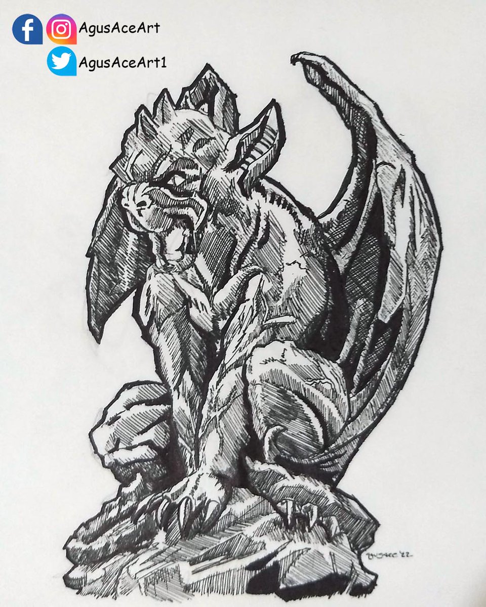 #gargoyle sketch (Ink) © Agus Ace Art #agusaceart #drawing #sketch #Ink #inkrawing #dibujo #boceto #tinta #dibujoatinta #fanart #sharpie #inktober #inktober2022 #gargola