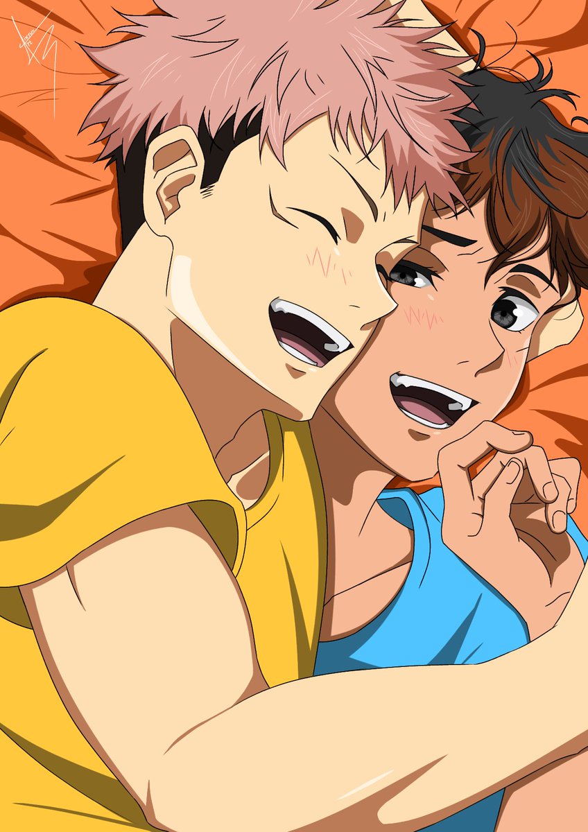 a very happy couple of boyfriends :)❤ #JujutsuKaisen #JJK #jujutsukaisenfanart #呪術廻戦 #jjkoc #itadoriyuuji #hiashigawaaisuke #aikyuu #虎杖悠仁 #fanart #art #digitalart #anime #manga #呪術廻戦ファンアート