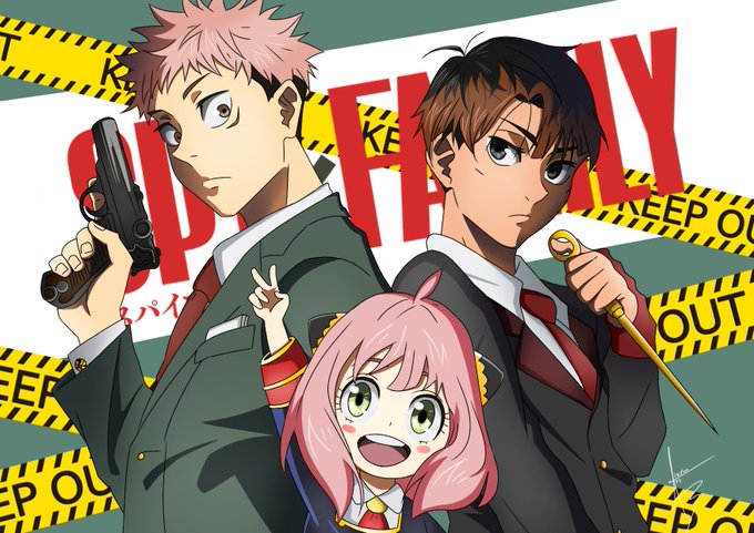 yuuji itadori - um espião 🧐 aisuke itadori - um assassino 🔪 anya itadori - a filha paranormal 🥰 #JujutsuKaisen Spy x Family #itadoriyuuji #hiashigawaaisuke #anya #aikyuu #jujutsukaisenfanart #SPYxFamily #digitalart #fanart #anime