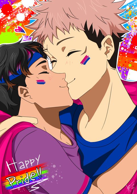 WE WISH TO ALL A VERY PLEASANT #PRIDEMONTH !!!💗💜💙 #JujutsuKaisen #JJK #jujutsukaisenfanart #itadoriyuuji #hiashigawaaisuke #aikyuu #anime #fanart #digitalart #Pride2022 #HappyPrideMonth #happypride2022 #ArtistOnTwitter