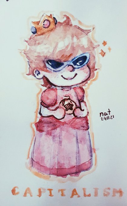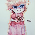 i made a watercolour painting of ranboo's acnh character (peach costume edition) :)) #ranboofanart #dsmpfanart #ranbooart #acnh #aimseyttv