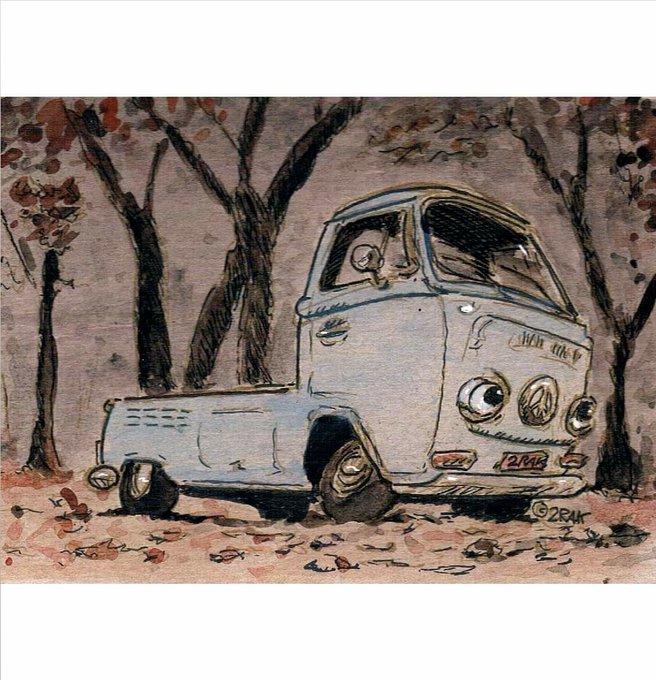 #baywindow in #automne #watercolor on cardboard #aquarelle original #inked #drawing #cardraw #cardrawing #illustration #aircooled #vw #nostalgia