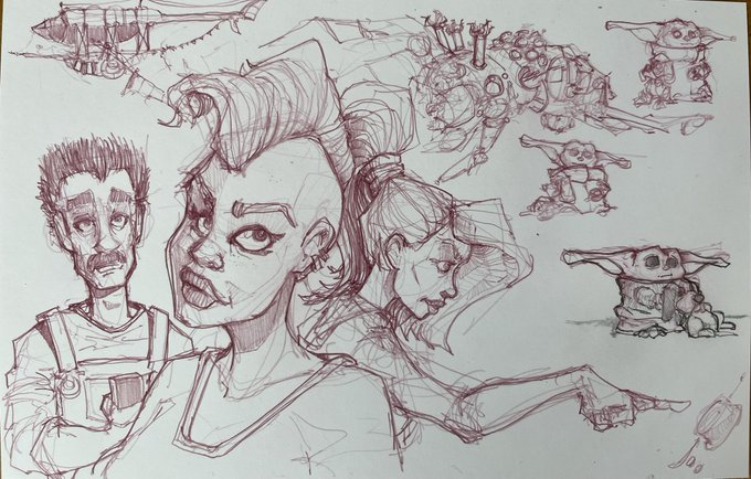 Here’s some #traditional #characterdesign #sketches along with #babyyoda and some #steampunk #airships . . . . . #art #illustration #doodlebags #doodle #draw #drawing #nashville #nashvilleartist #nashvilleart #scifi #spacegirl #space #Pencilsketch #sketchy