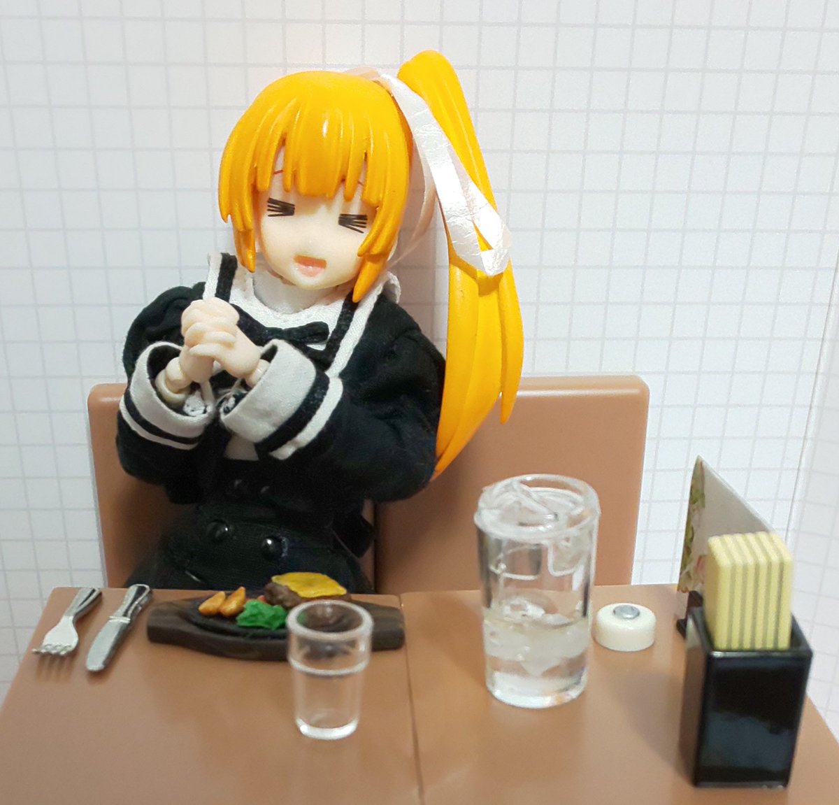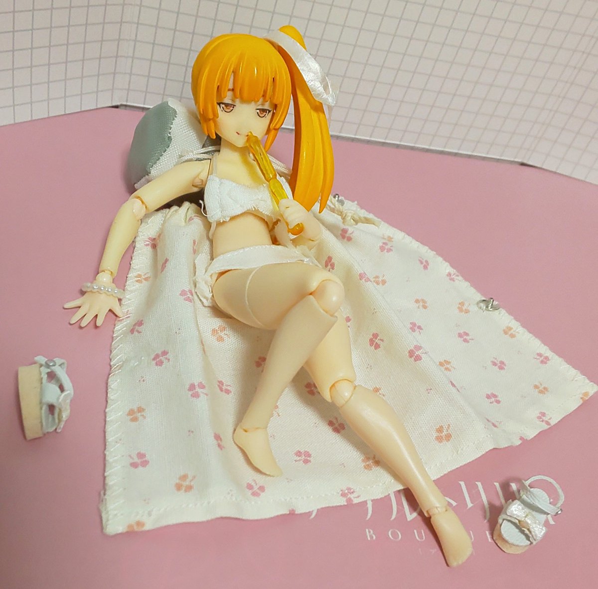 撮影会でお世話になってる #ミニチュアスタジオ からアサリ公式アイテムが出たとなれば買うしかあるまい! しかもめちゃかっこいい椅子!! 組み立ても一瞬でできたので、うちの子を座らせると…校章が隠れちゃってもったいない。他に何か……コレ? #AKG21 #アサルトリリィドール部 #カスタムリリィ