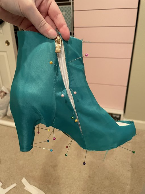 Very Slowly making some non-stretch taffeta boot covers 🤪 Tomorrow afternoon I’ll go into the garage and use the good ol Toxic Fumes Glue #cosplay #cosplaywip #ala18 #precure #cosplaygirl #curemilky