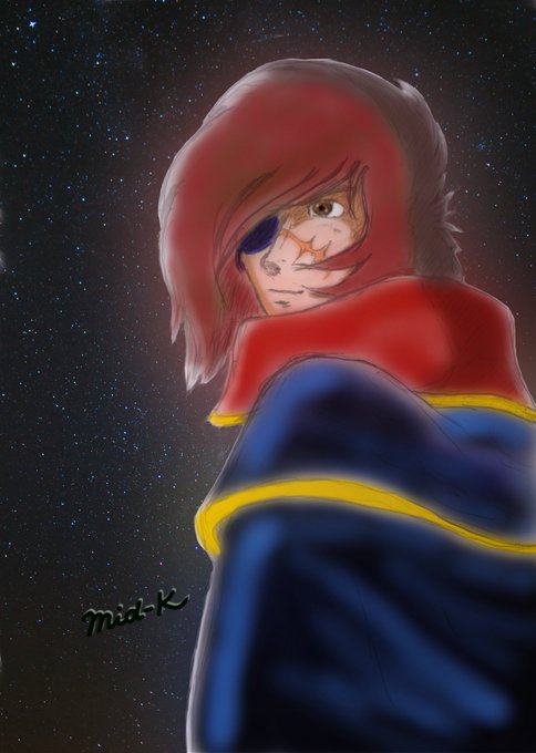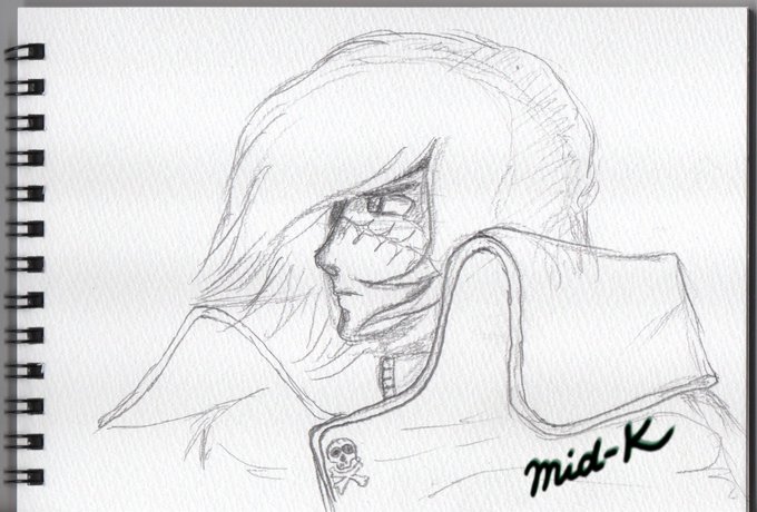 松本零士 先生のキャラクター キャプテンハーロック(CV 井上真樹夫 さん)を この画はかなり気に入っているんです。 #芸術同盟 #絵描きさんと繋がりたい #松本零士 #harlock #albator #みんなで楽しむTwitter展覧会