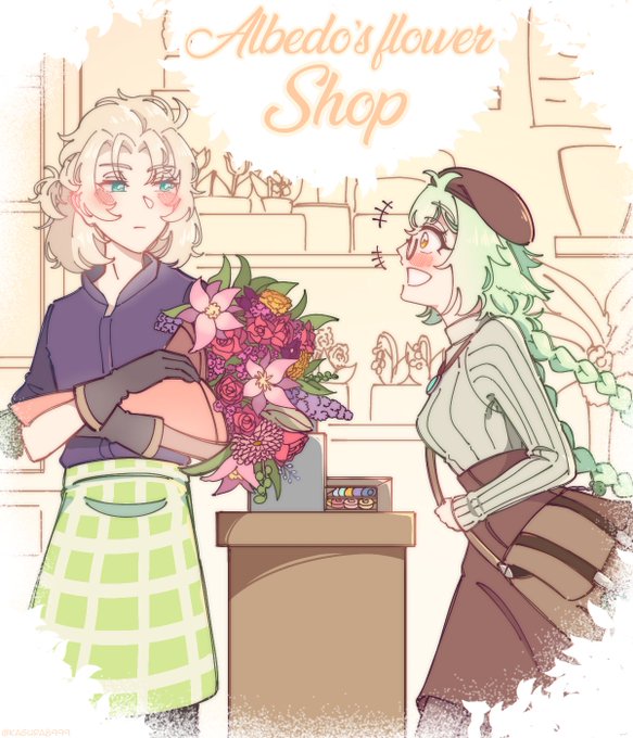 (alberose/アルスク) #AlberoseWeek2021 day 1 | flower (1/2) 🌼🌻🌺 Welcome to Albedo’s flower Shop! 🌷🌻🌼 Jgdheyey I wanted to draw this aw for so long im happy I made it real 😭😭😭💕💕💕 #Genshin #原神 #albecrose #alberose #Sucrose #Albedo