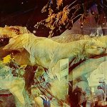 Double exposure #albertosaurus impression @royaltyrrell #dinosaur #tyrannosaur #art #photography #digitalart #dinosaurart #paleoart