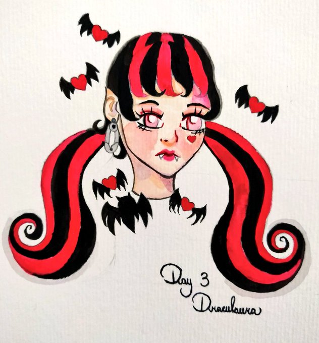 Week 1 Day 3 #alefvernonart Monster High Draculaura 💖🦇 #inktober2021 #inktober2021day3 #MonsterHigh #Inktober #watercolor #draculaura