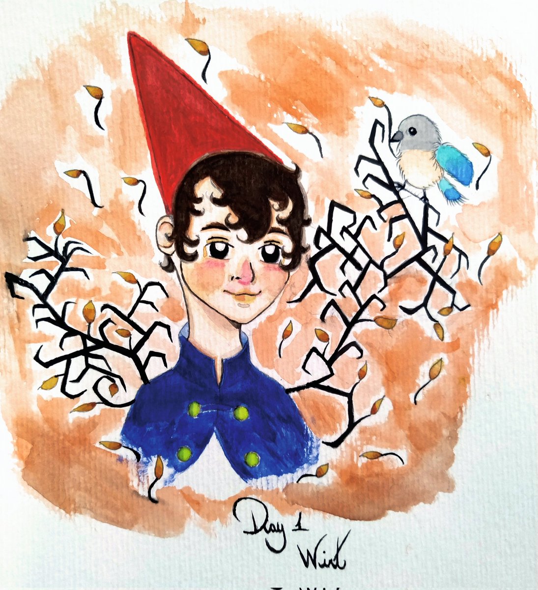 Week 1 Day 1 #alefvernonart Over the Garden Wall Wirt 🍁🍂 #inktober2021 #inktober2021day1 #Overthegardenwall #otgw #wirt #watercolor