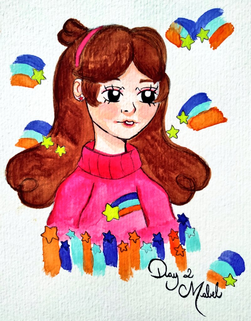 Week 1 Day 2 #alefvernonart Gravity Falls Mabel ⭐🌈 #inktober2021 #inktober2021day2 #GravityFalls #Inktober #watercolor