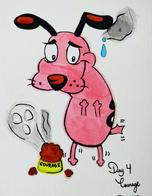 Week 1 Day 4 #alefvernonart Courage the cowardly dog Courage 🐾👻 #inktober2021 #inktober2021day4 #inktoberday4 #inktober #CourageTheCowardlyDog #courage