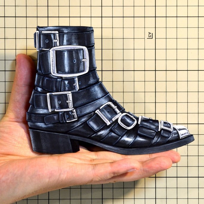 【今日の靴】02071足目 “Alexander McQueen” Punk 45 Buckled Leather Ankle Boot(FW2022) #AlexanderMcQueen #SarahBurton #illustration #copic #copicmarkers #切り絵 #イラスト #コピック