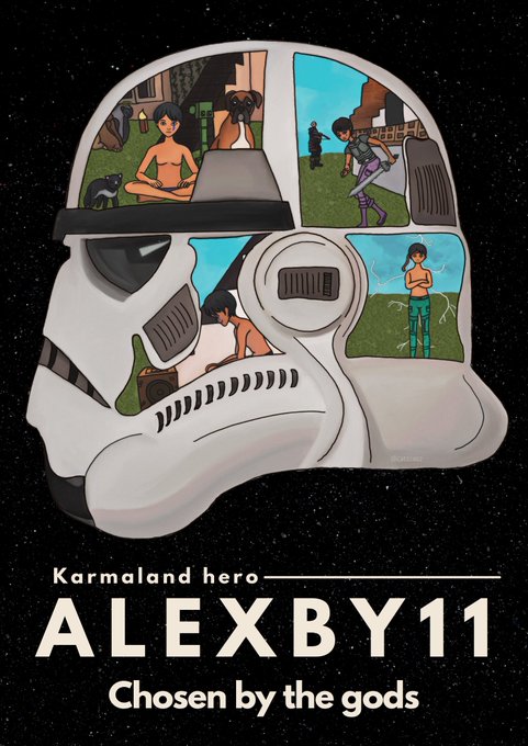 Pues quería sacarme esta idea de mi cabeza: el casco lleno de momentos de @aLexBY11 en Karmaland ojalá dibujar más lindo, pero así salió, decidí ponerlo tipo poster 💖 #Karmalart #alexbyfanart