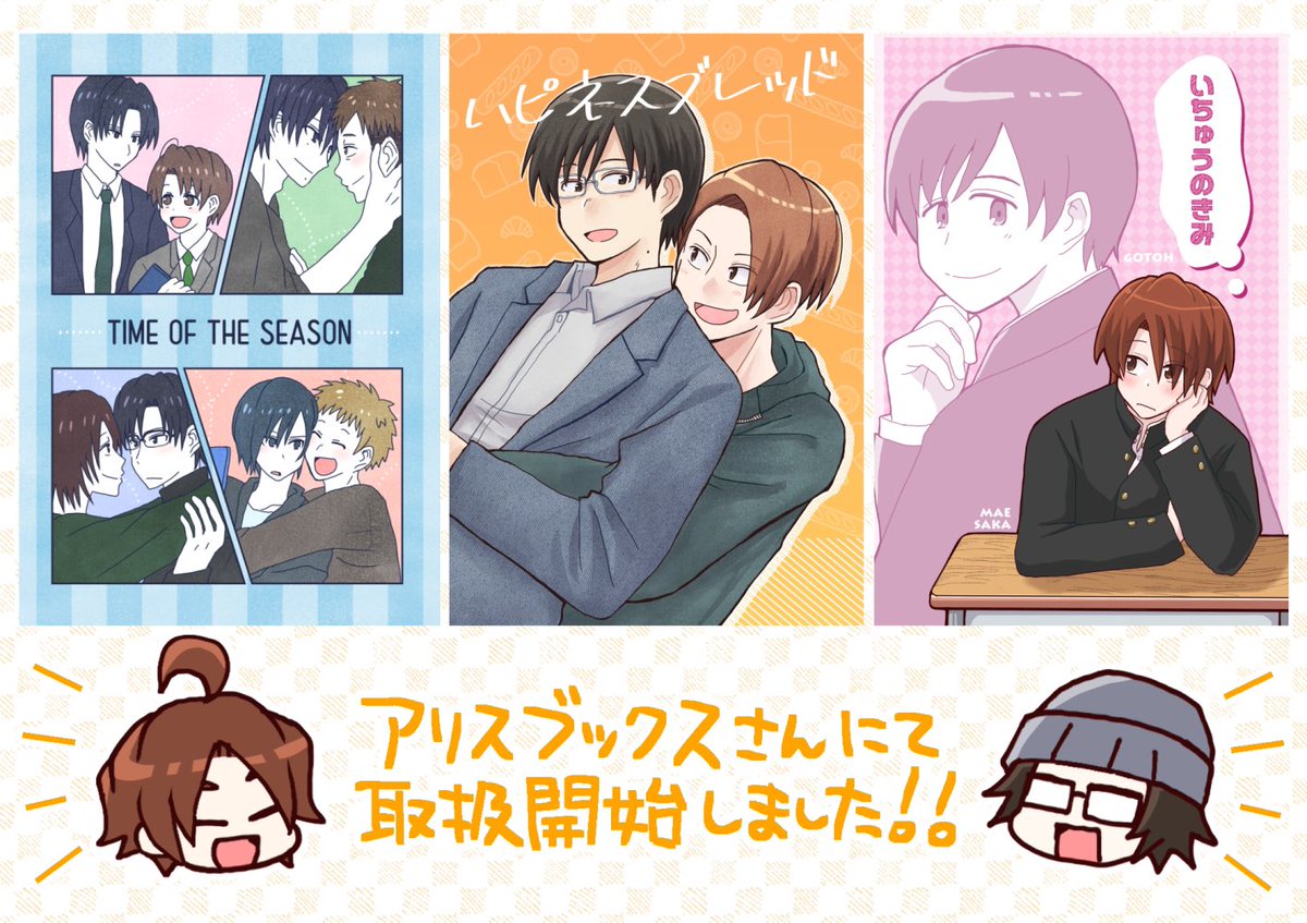 アリスブックスにて以下の3種を取扱開始しました!よろしくお願いしますっ!! ◆TIME OF THE SEASON alice-books.com/item/show/9346… ◆ハピネスブレッド alice-books.com/item/show/9346… ◆いちゅうのきみ alice-books.com/item/show/9346… #創作BL #アリスブックス #alicebooks #alicebooks_創作BL