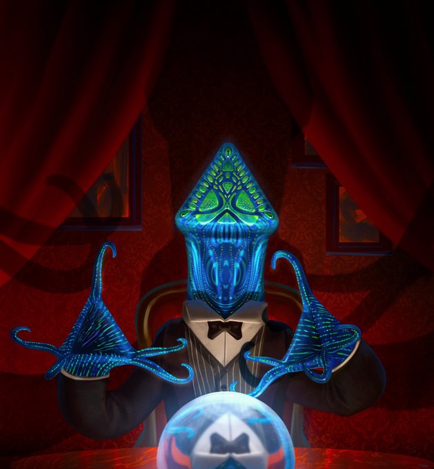 A #portrait of the enigmatic oracle Enoch Pendergast. Enoch's species are able to peer into branching realities and calculate the outcome of almost any event with 90% accuracy. #alien #scifiart #scifi #illustration #speculativebiology #speculativeevolution #space