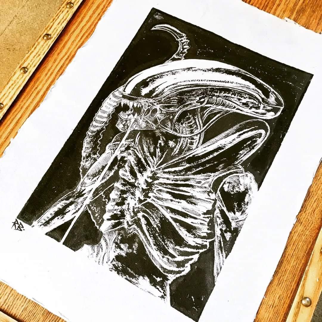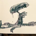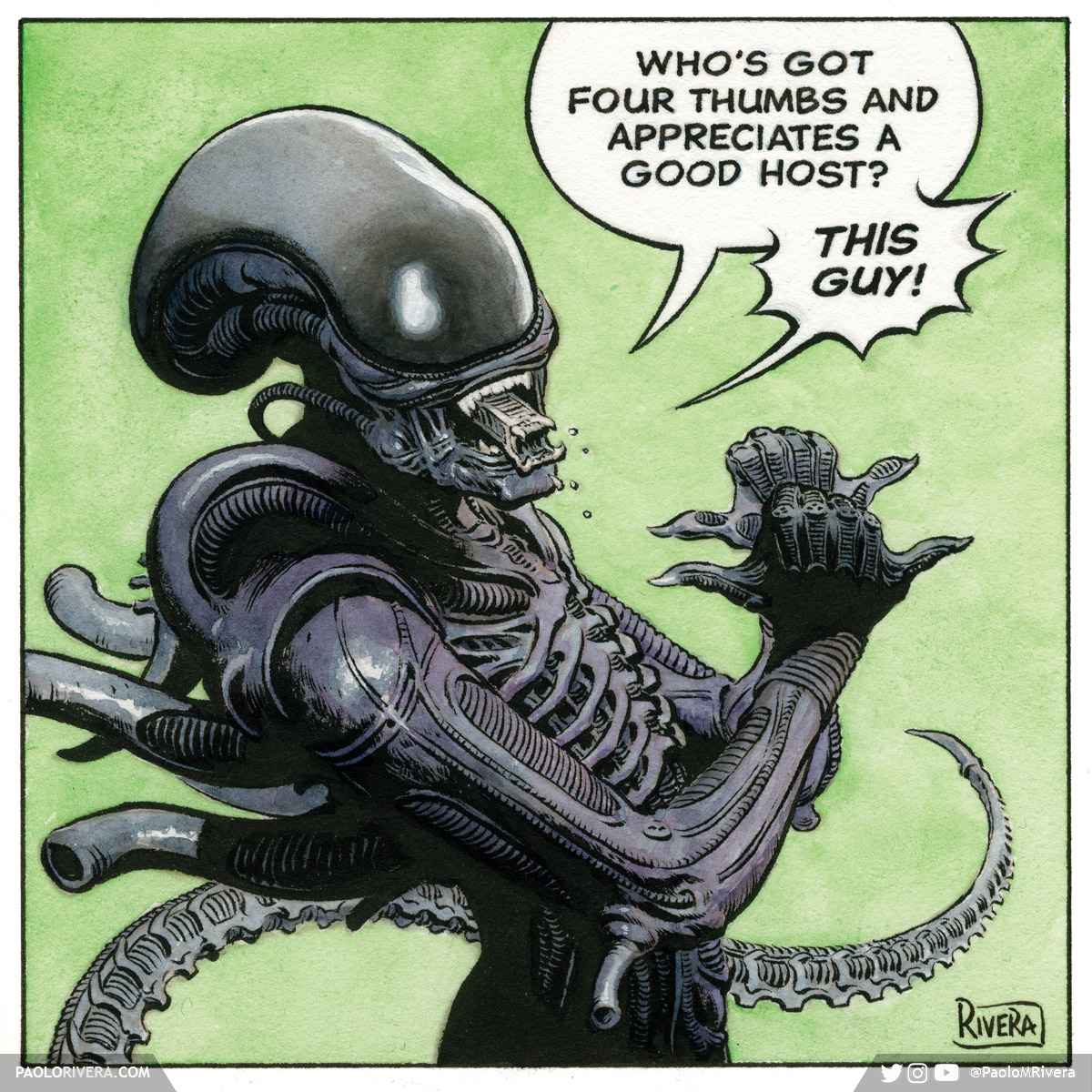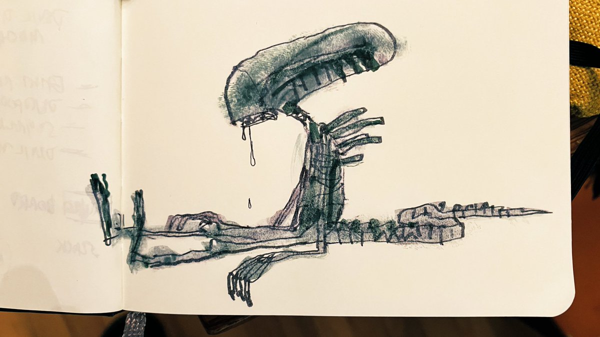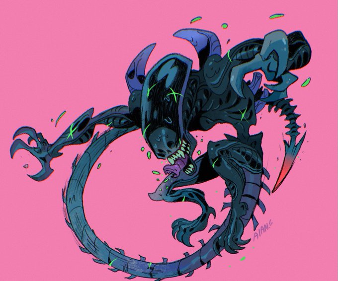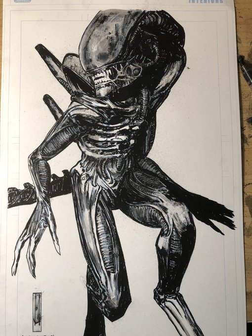 Happy #AlienDay! I keep meaning to do a redraw of this 2015 #Inktober, but then I get scared of how complicated #xenomorphs are and wimp out! 😅 #AlienDay2023 #Aliens #xenomorph