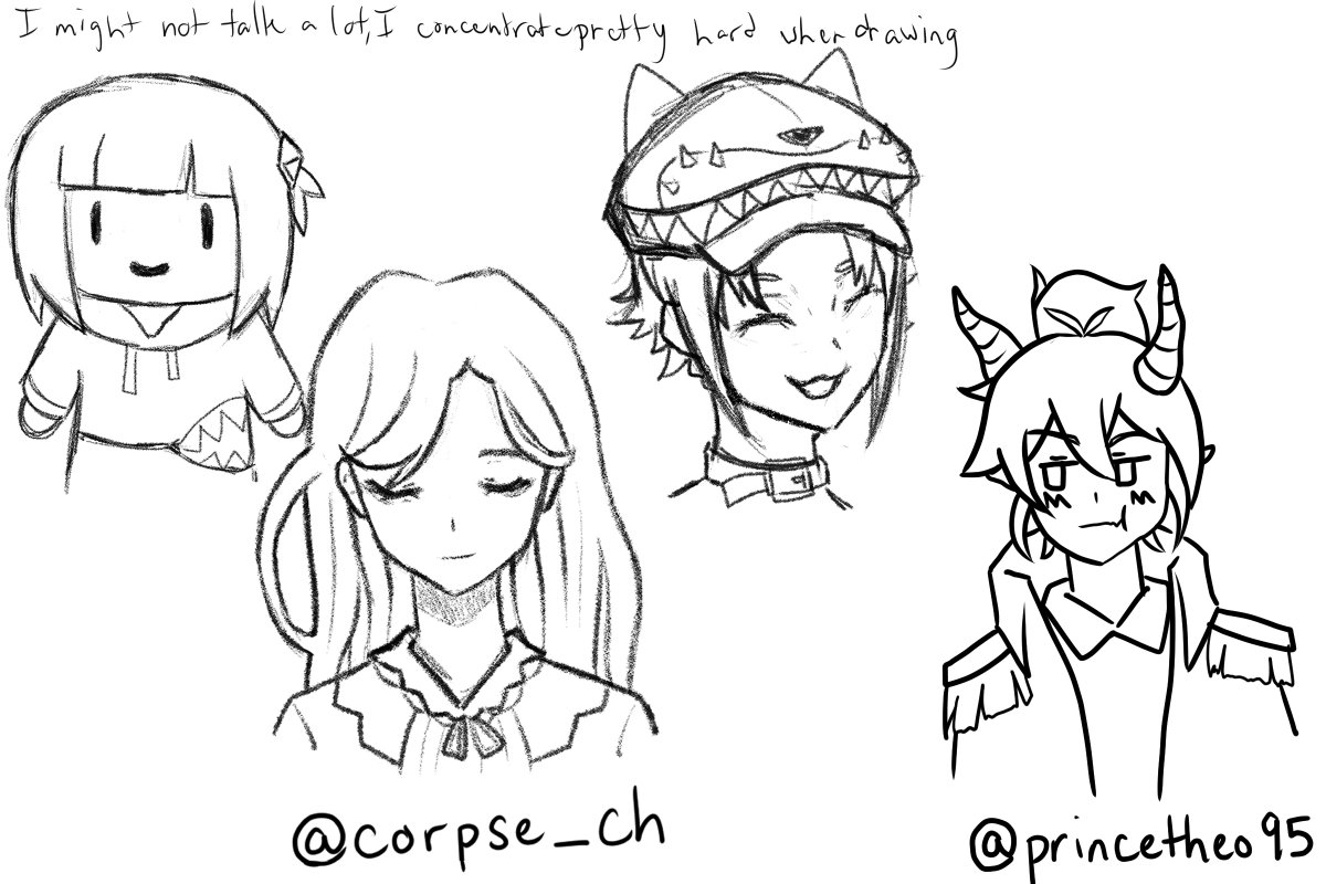 Here's what came out of the Drawing Stream! Thanks to everyone who showed up and chatted! I'll have to do something like this more often and get better at it. See you guys at 8PM CST for Genshin Archon Quest #Vtuber #vtuberfanart #gawrt #MystArt #almsforthedead #PrinceTheoArt