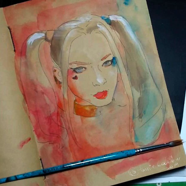 tamiegadelha #inktober Day 03 Harley Quinn #tamiegadelha #inktober #inktober2019 #watercolor #paiting #fanart #artwork #dc #comics #manaus #manausartistgang #Amazonas