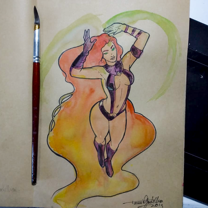 Starfire. Inktober 2019 day 22 #tamiegadelha #inktober #inktober2019 #starfire #teentitans #comics #dc #fanart #watercolor #paiting #fire #superherogirl #manaus #amazonas #brazil #manausartistgang #color #drawing