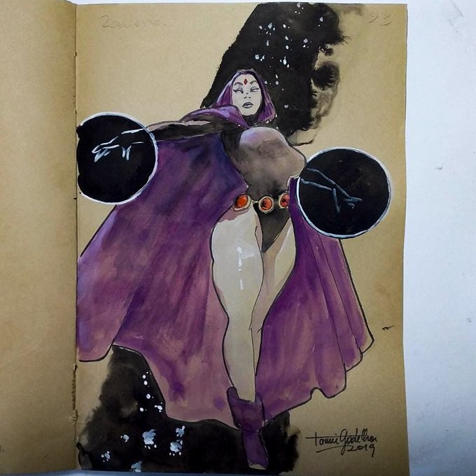 Raven. Inktober 2019 Day 23 #inktober #Inktober2019 #raven #ravena #teentitans #dc #comics #fanart #tamiegadelha #tamie #gadelha #manaus #amazonas #brazil #superherogirl #hero #adventure #drawing #painting #pose #pinup #girl