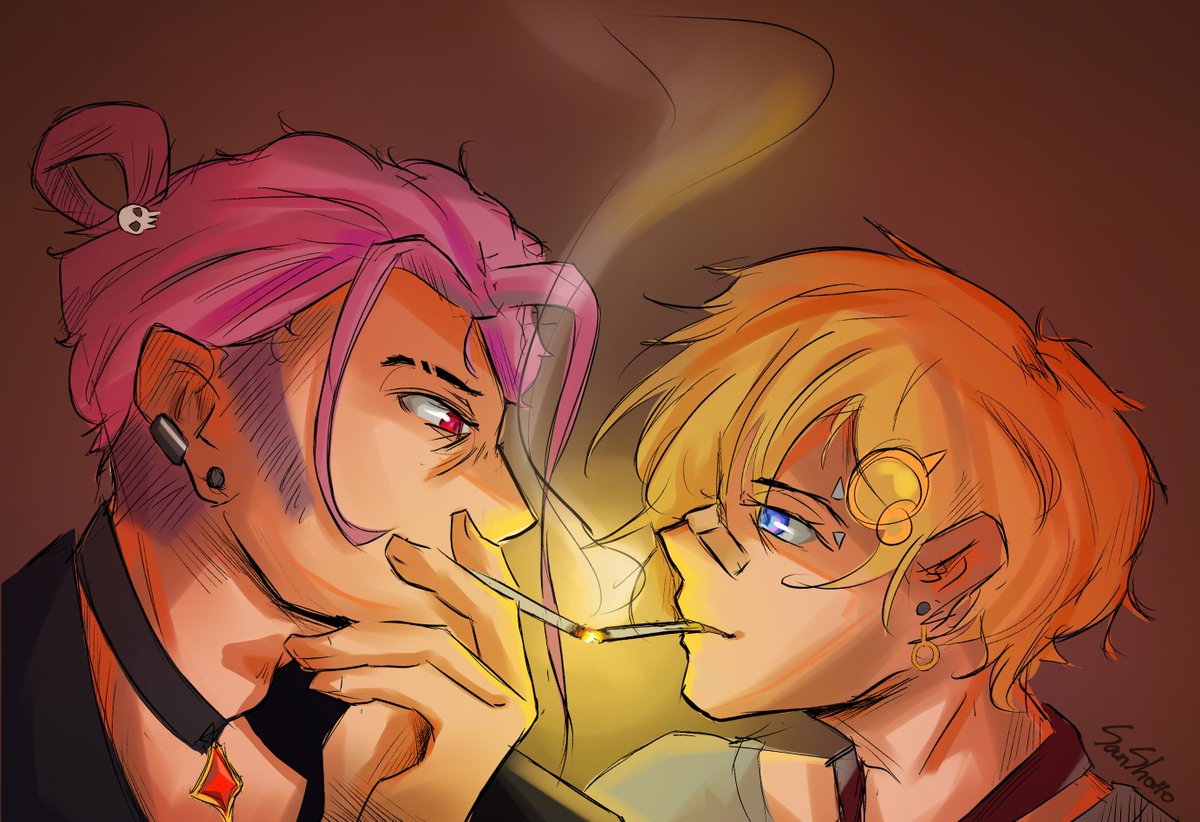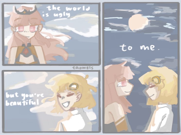 Day 3: Sunrise/Twilight A bit late but here is some beloved Amemori!! #ameliaRT #callillust #amemori #PolyEnRarePairWeek