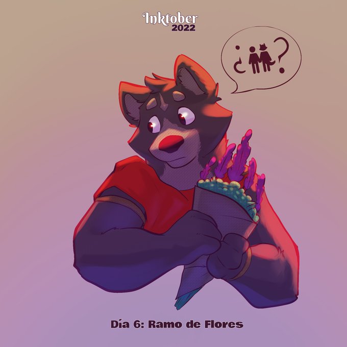 🦊: Día 6 "Ramo de Flores", pero no cualquier ramo de flores ;3, alguien quiere pedirte algo muy especial. #furry #inktober2022 #amicus