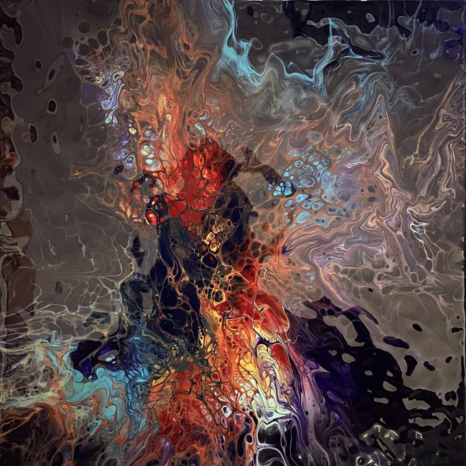 絵の具の乗せ方とか風の当て方もっと研究しないと #フルイドアート #ポーリングアート #マーブリングアート #セルアート #アクリル画 #アクリルアート #アクリリックポーリング #アクリリックペイント #アート #抽象画 #イラスト #アムステルダム #リキテックス #amsterdam #liquitex