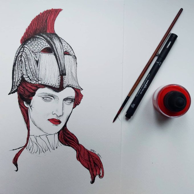 Inktober 2021 Day 15 'Helmet' Athena, goddess of wisdom 🦉 #inktober2021helmet #inktoberhelmet #ancientgreece #inktober #inktober52 #inktober2021 #inktoberallyearlong #myinktoberstory #comics #blackandwhite #design #inking #character #illustration #inkdrawing #drawing