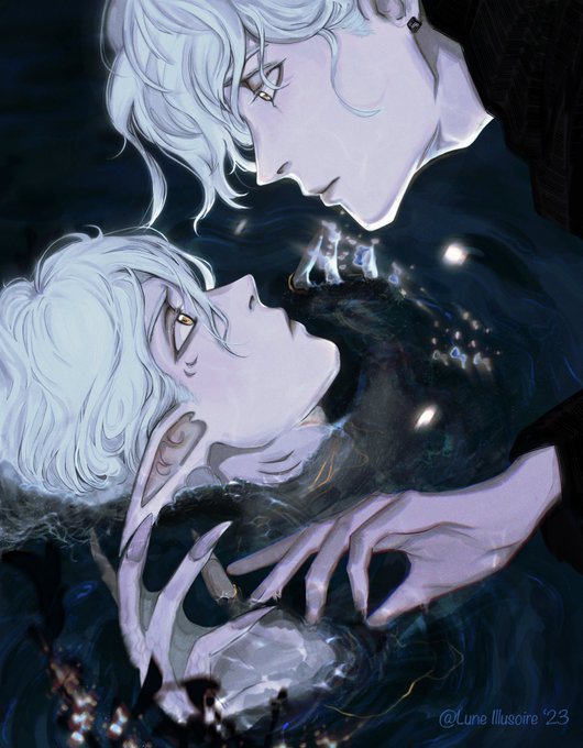 My first ever MerMay piece 🐠🤲 and it’s Andreil! #aftg #aftgfanart #mermay2023 #neiljosten #andrewminyard #art #andreil
