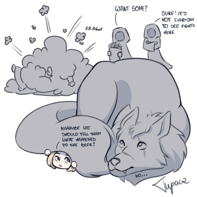 28. Fight Anduin and his wolf, Lo'Gosh, didn't say anything about who made the whole supply of beer disappear. Who might that be, I wonder? #nazgultober #lordoftherings #mystictober_reku #inktober2022 #inktober2022day28 #CLIPSTUDIOPAINT #anduinwrynn #nazgul #wolf #warcraftart