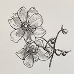 Some #inktober sketches of white flowers (prickly burr, white anemone, mum). I am a bit behind schedule! #art #ink #flowers #anemone #pricklyburr #mum #inktober2022
